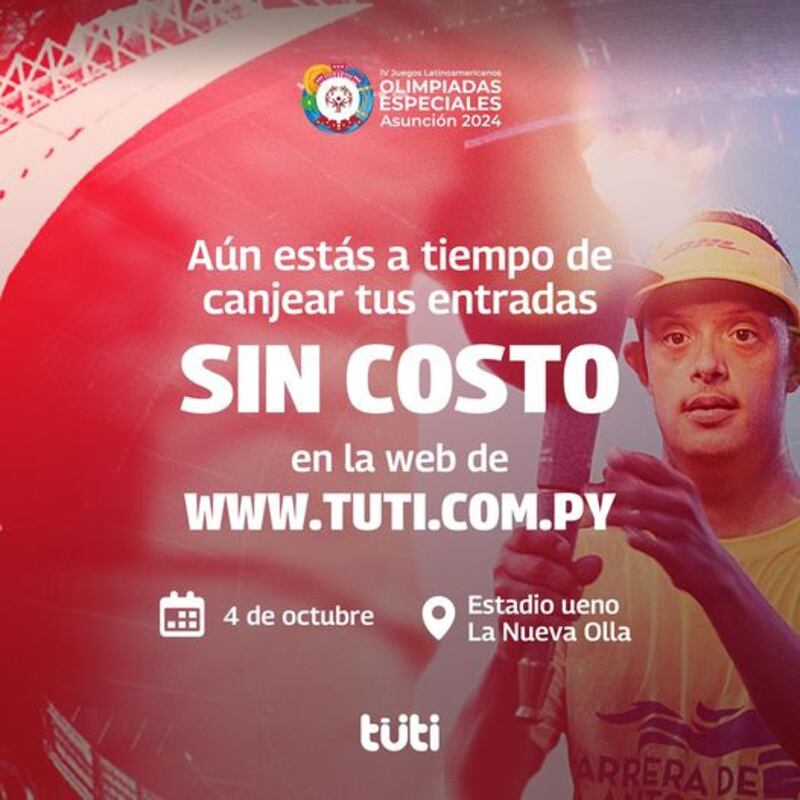 Las entradas para la inauguración y para todas las competencias, están todavía disponibles a horas del evento y podrán ser canjeadas sin costo exclusivamente a través de la plataforma web www.tuti.com.py y estarán diferenciadas por fecha y por sede de competición.