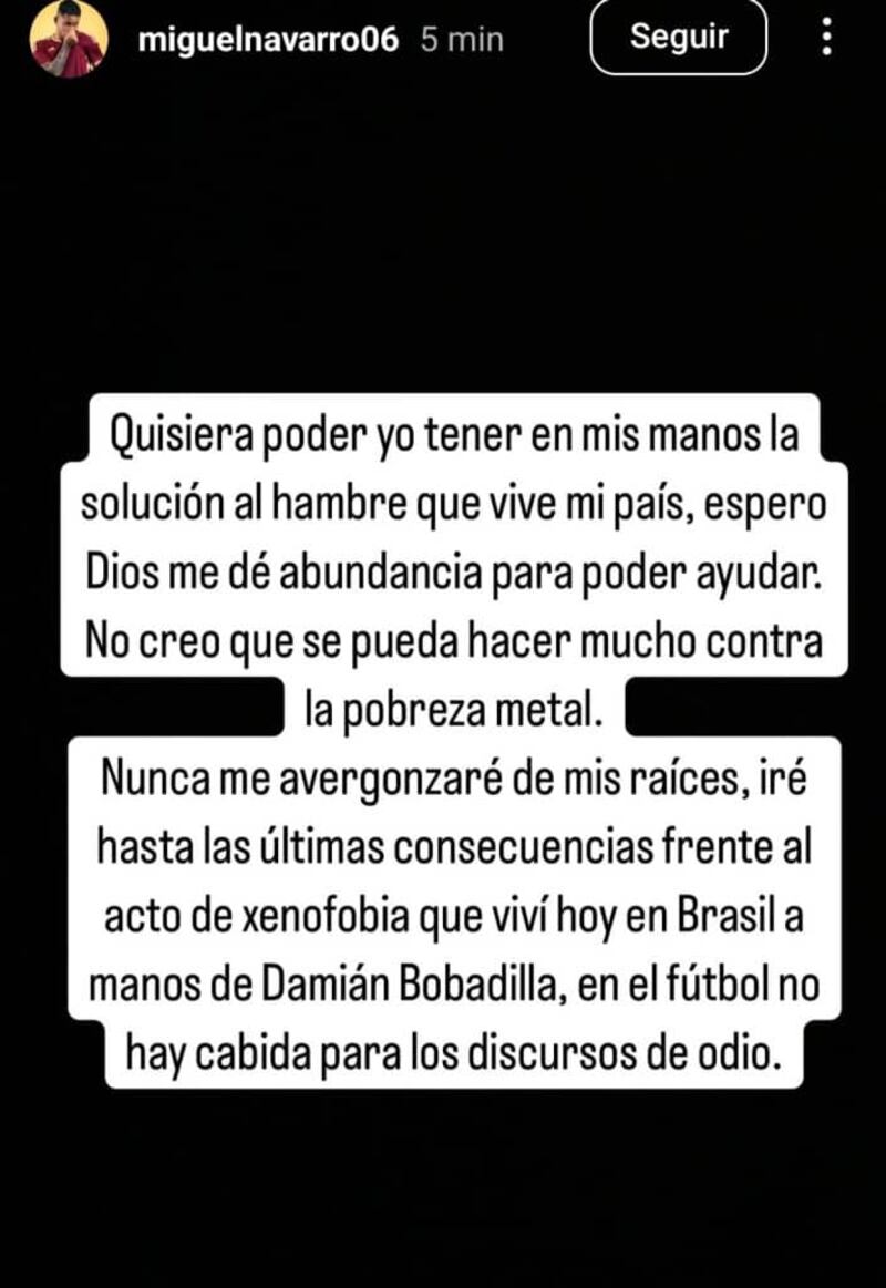 En otra red social, X, Talleres de Córdoba también se pronunció sobre el supuesto acto de xenofobia y se solidarizó con su jugador. "Nos solidarizamos profundamente con Miguel y con su familia en este momento. Como institución, levantamos la voz contra cualquier forma de discriminación. NO hay lugar para el odio en el fútbol", reza el comunicado del club cordobés.