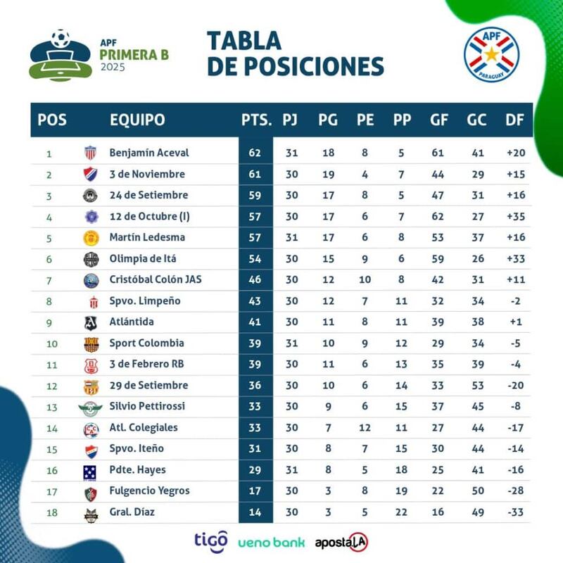 En el primer turno desde los Jardines del Kelito donde hizo de local Presidente Hayes que sigue en su lucha por evitar el descenso recibió a Benjamín Aceval que tuvo que dar vuelta un resultado adverso porque inicio al frente Presidente Hayes con el tanto de Tomás Rojas con el cual se fueron al descanso. Pero en la complementaria el doblete de Osvaldo Argüello permitió a Benjamín Aceval cambiar el resultado a su favor y con el cual finalizo el partido para pasar a comandar en las posiciones hasta el juego de 3 de Noviembre.