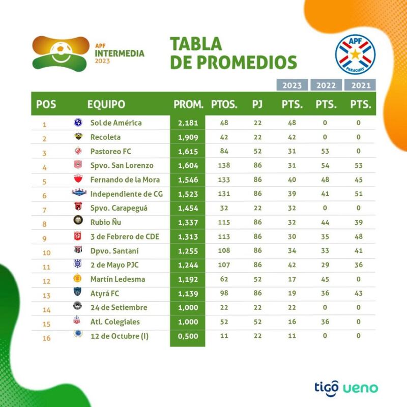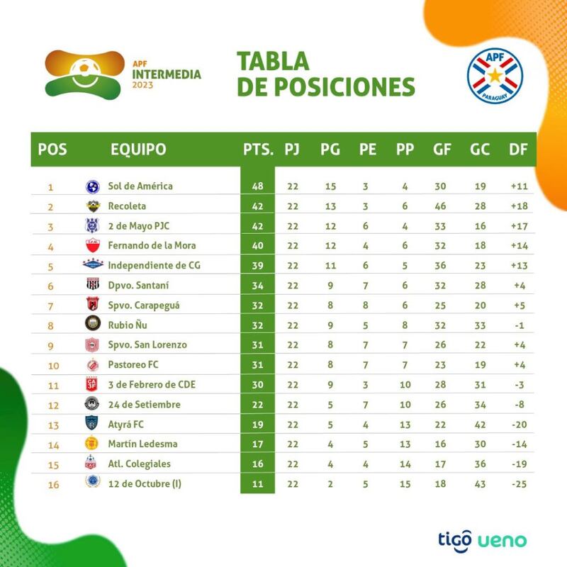 Con ello, los danzarines elevan a seis puntos su diferencia sobre el par de escoltas que ahora lo persiguen más de cerca y que son Deportivo Recoleta y 2 de Mayo de Pedro Juan Caballero, al cerrarse la fecha 22.