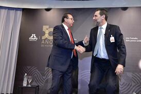 Tras el acto conmemorativo de los 50 años de la firma del Tratado de Itaipú, los directores generales de Paraguay y Brasil, Manuel María Cáceres y Enio Verri, respectivamente, ofrecieron sus declaraciones en relación a la próxima revisión del Anexo C del Tratado, cuyo plazo finaliza el 13 de agosto.