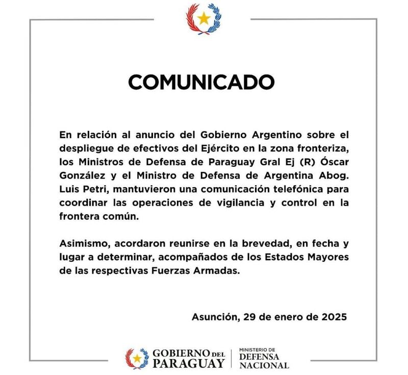 Por el lado paraguayo, la Fuerza de Tarea Conjunta ya había ampliado su zona de operaciones hacia Ñeembucú, Itapúa y Misiones. Los dos últimos departamentos hacen fronteras con Argentina.