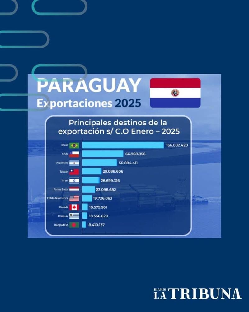 De acuerdo a los datos proporcionado por la Ventanilla Única de Exportación, en el primer mes de 2025, se exportaron 556.404 toneladas de productos paraguayos a distintos países del mundo.