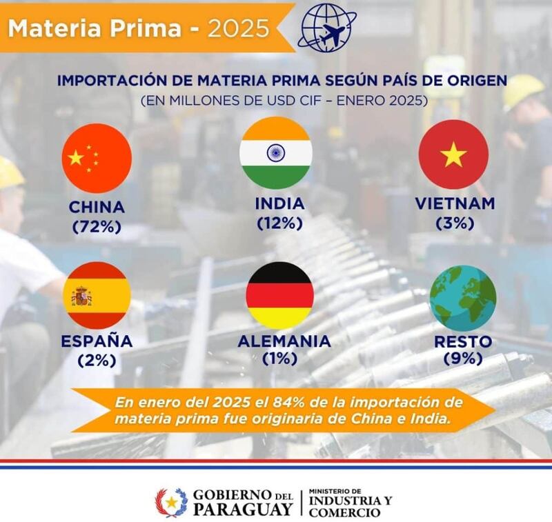 El informe indica que "en el primer mes del año las importaciones fueron un 39% más al monto que había sido obtenido en enero del 2024, cuando fue de USD 31 millones. Este incremento en las adquisiciones de productos demuestra también que la capacidad industrial paraguaya va en aumento", agrega.