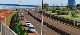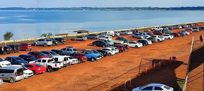 En el lado argentino de la frontera se pudo observar las habituales filas de vehículos que se dan en determinadas fechas del año esperando cruzar hacia Encarnación.