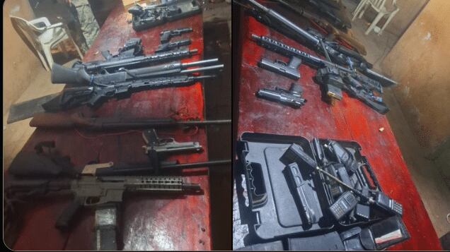 Una información preliminar indica que fueron detenidos cuatro personas, pero no se le encontró al líder del grupo, que supuestamente es Marciano Denis. La Policía se incautó de armas de grueso calibre, piezas para aeronaves, entre otras evidencias.