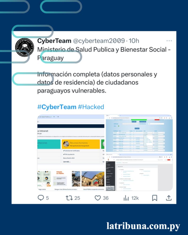 LEA TAMBIÉN: Cyberteam se adjudica ciberataque a instituciones públicas de Paraguay
