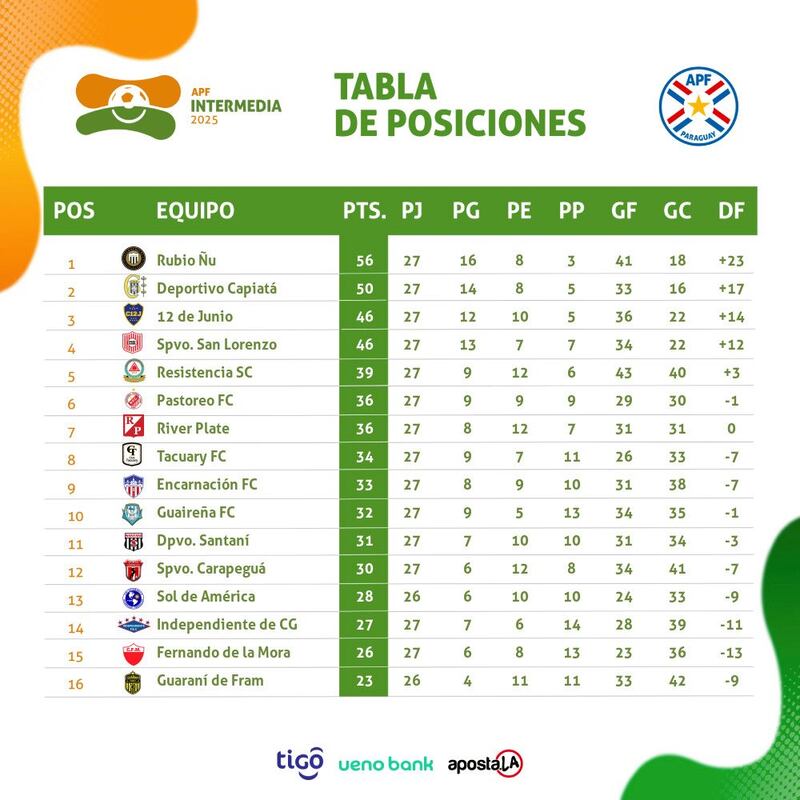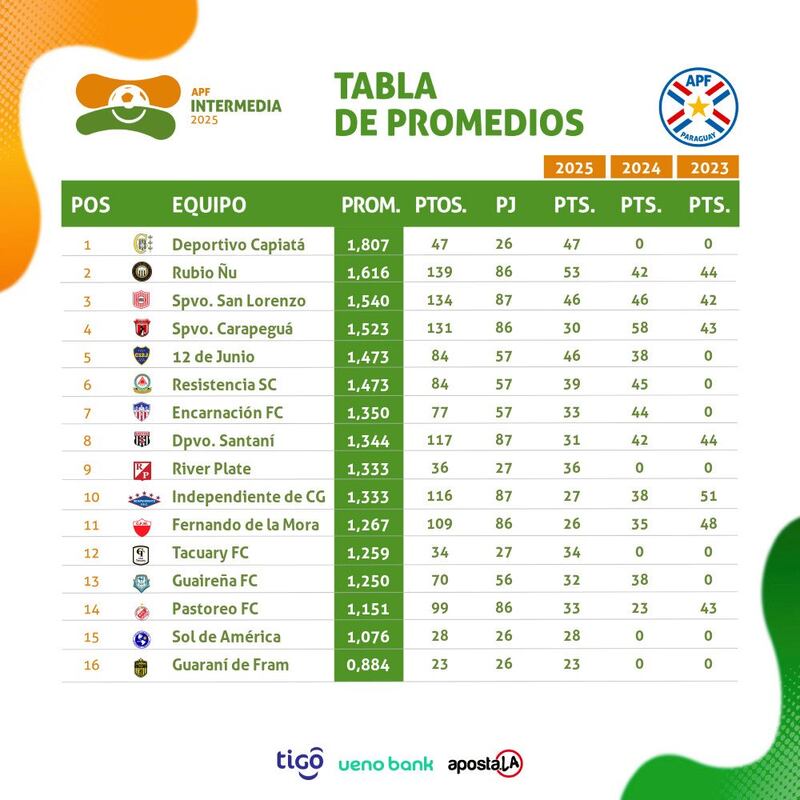 En los otros juegos de la jornada domiical, resalta la agónica y trascendente victoria de Deportivo Capiatá por 2 a 1 sobre Fernando de la Mora, que se afianza en la segunda ubicación ahora con cuatro puntos de luz a nueve por discutir, respecto a otros cada vez menos sólidos aspirantes a ascenso.