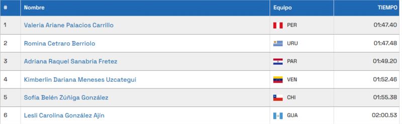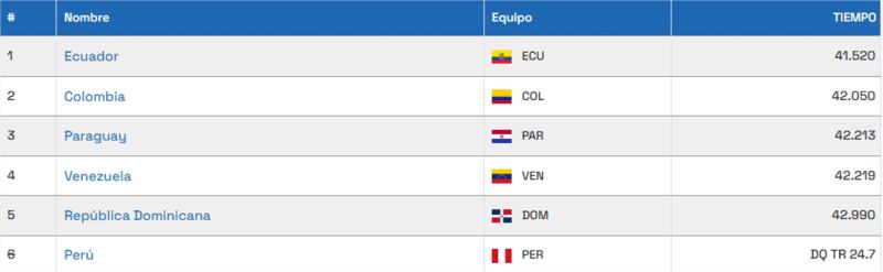 Exactamente lo mismo ocurrió en el atletismo, con la conquista del bronce por parte de la posta mixta de 4x100 relevos intgegrada por Fredy Abel Maidana, Jonathan Wolk, Macarena Jimenez y Xenia Hiebert. Estos fueron los cronos de los principales protagonistas:
