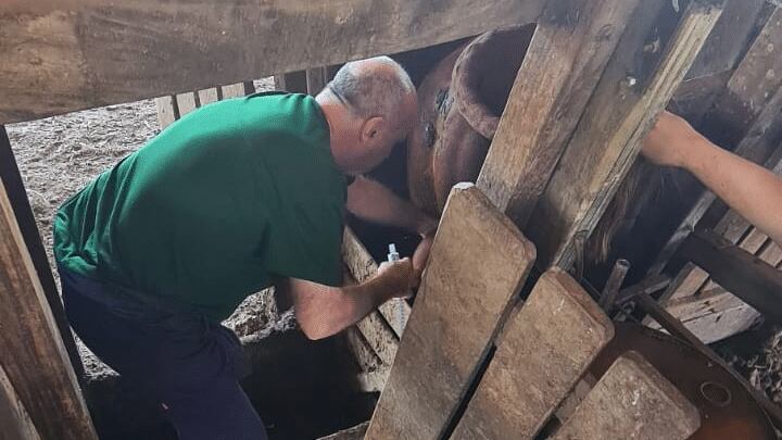 El Dr. Gardón Poggi, asistido por estudiantes de la carrera de Veterinaria UNAE realiza el trabajo de campo en tambos de Itapúa.