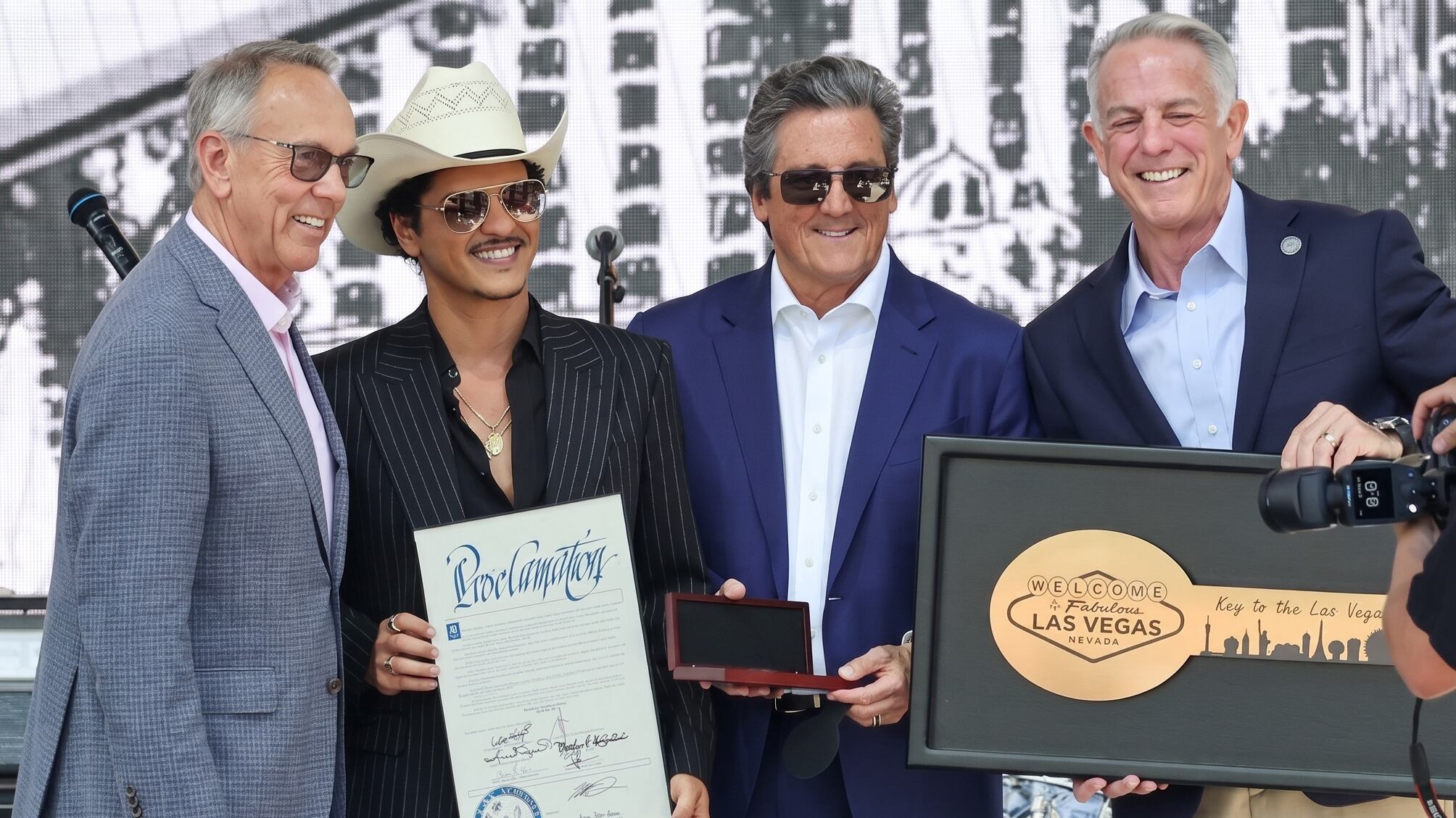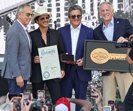 La ciudad de Las Vegas, en Estados Unidos, celebró a Bruno Mars con una serie de reconocimientos que marcaron su carrera. Entre ellos, la entrega de la llave de la ciudad, la proclamación oficial del “Día Bruno Mars”, el renombramiento de una calle en su honor y el anuncio de una donación de un millón de dólares destinada a un hospital infantil del estado de Nevada.