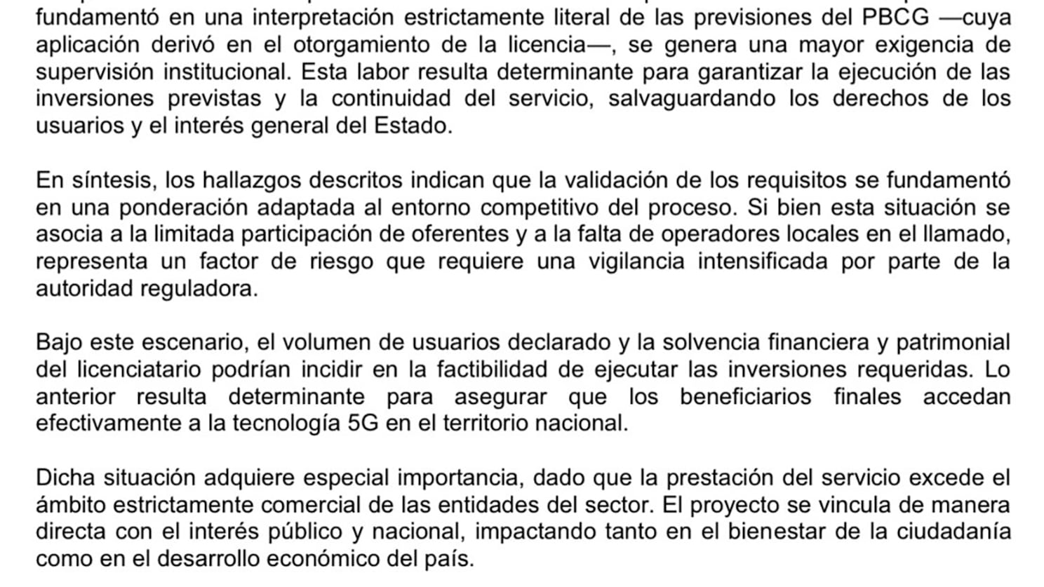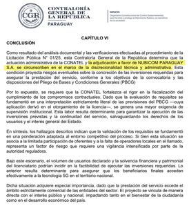 Fin de la novela. La Contraloría General de la República (CGR) confirma que la adjudicación de la Comisión Nacional de Telecomunicaciones (Conatel) de la banda 5G a la empresa Nubicom Paraguay SA se ajusta al marco de discrecionalidad técnica y administrativa.