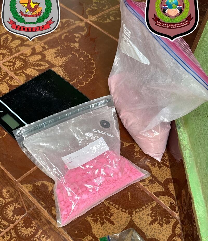 Durante el operativo, los agentes incautaron varias bolsas de polietileno con diferentes cantidades de sustancias. Entre ellas se encontraba un paquete con aproximadamente 250 gramos de presunta cocaína tipo TUSI, otro con 670 gramos del mismo polvo rosado y otras bolsas que contenían 803 y 900 gramos de una sustancia blanquecina aún pendiente de confirmación laboratorial.