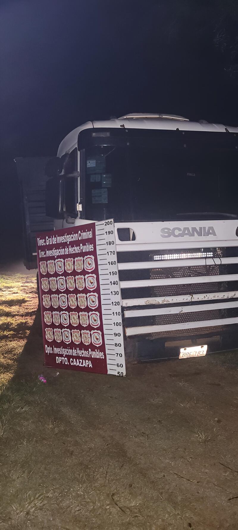 La pesquisa permitió reconstruir el recorrido posterior. Desde Yuty, el cargamento fue trasladado hasta San Juan Nepomuceno. Allí, en un operativo ejecutado alrededor de las 20:00 del viernes 10 de abril, los intervinientes localizaron el tractocamión con semirremolque que llevaba la carga robada y procedieron a su incautación.